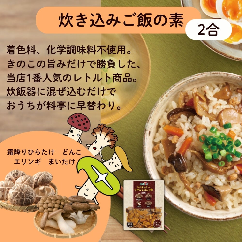 他の画像を見る 【10個まとめ買い】【国産】きのこ屋が作った きのこ ごはんの素 (150g 2合用 2~3人前) 当店通常価格 ¥ 3,100 のところ ¥ 2,728 税込 【2合用】プレミアムきのこ「霜降りひらたけ」など4種のきのこ入り! カートに入れる お気に入りに登録する (0)