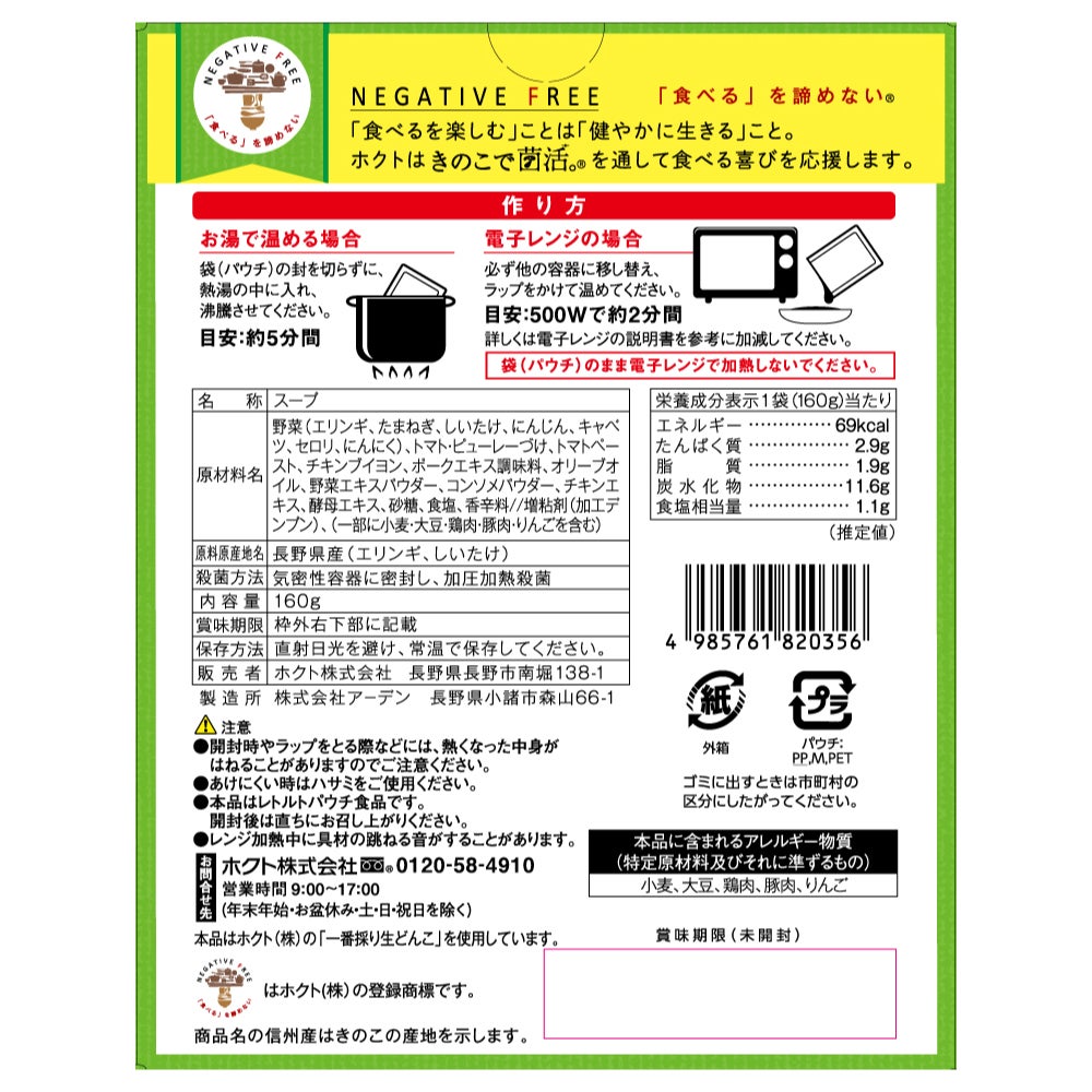 他の画像を見る 【20個まとめ買い】信州産 きのこを味わう具沢山スープ ~トマト仕立て~(160g 1人前) 当店通常価格 ¥ 7,200 のところ ¥ 6,120 税込 信州産エリンギとしいたけの食感を楽しむ具沢山スープ 詳細を見る お気に入りに登録する (0)