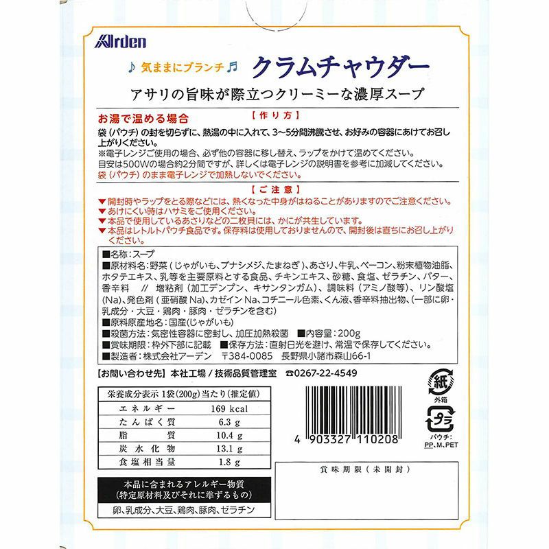 他の画像を見る 【5個まとめ買い5%OFF】気ままにブランチ クラムチャウダー (200g 1~2人前) 当店通常価格 ¥ 1,265 のところ ¥ 1,202 税込 アサリの旨味が際立つクリーミーな濃厚スープ カートに入れる お気に入りに登録する