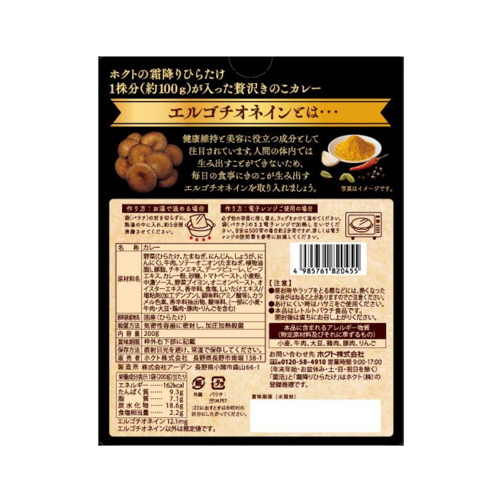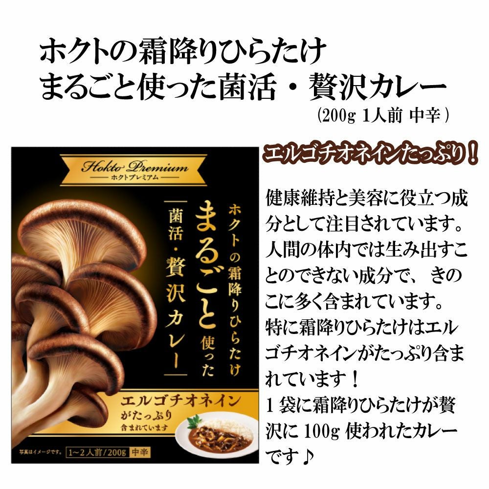 他の画像を見る ホクトの霜降りひらたけ まるごと使った菌活・贅沢カレー (200g 1~2人前 中辛) ¥ 510 税込 ホクトの霜降りひらたけ1株分(100g相当)が入った贅沢きのこカレー! スパイスを効かせて大人の味に仕上げました。 霜降りひらたけだからこそ味わえる旨味と食感をお楽しみください! カートに入れる お気に入りに登録する