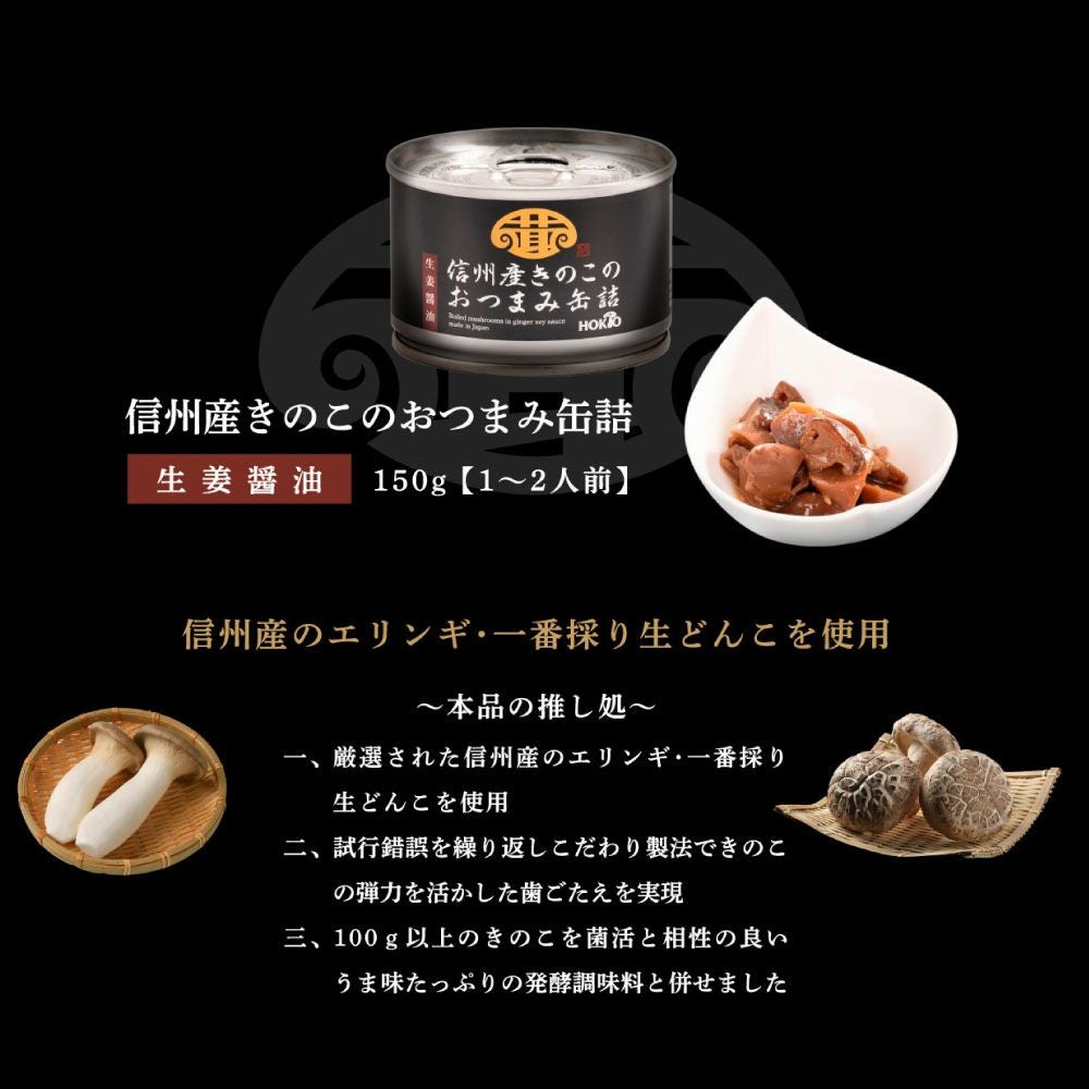 他の画像を見る 信州産きのこのおつまみ缶詰(生姜醤油) ¥ 540 税込 もっと手軽にきのこを!! 信州産のきのこを贅沢に使ったお酒にも合うおつまみきのこ缶♪ ヘルシーでお酒にも合う生姜の効いたお味に仕上げました! 焼いたお肉にかけてさらに美味しさアップ!!! カートに入れる お気に入りに登録する