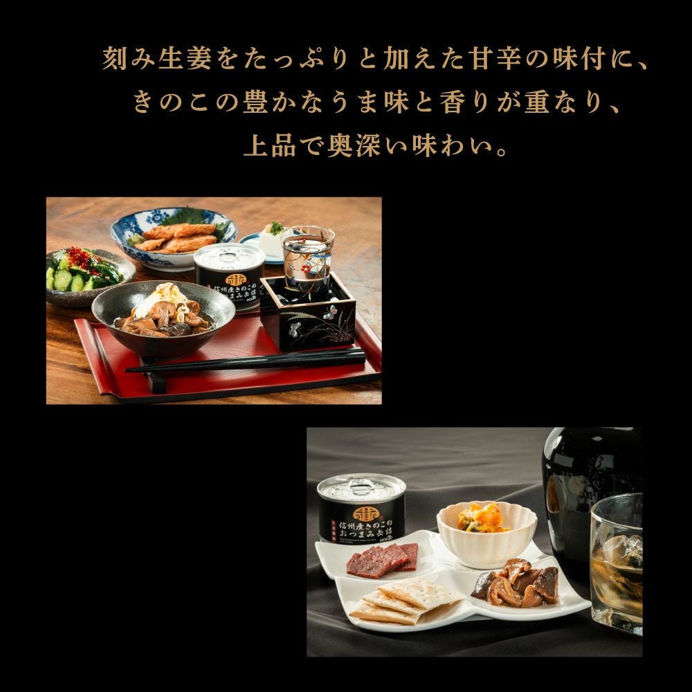 他の画像を見る 【ギフトボックス入り】信州産きのこのおつまみ缶詰 6個セット(にんにく味噌3個・生姜醤油3個) ¥ 3,590 税込 もっと手軽にきのこを!! 信州産のきのこを贅沢に使ったお酒にも合うおつまみきのこ缶♪ ヘルシーでお酒にも合う!! 焼いたお肉にかけてさらに美味しさアップ!!! 詳細を見る お気に入りに登録する