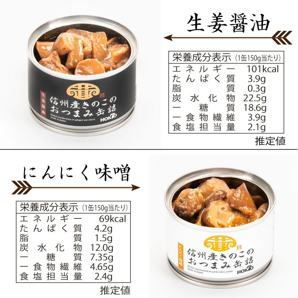 他の画像を見る 信州産きのこのおつまみ缶詰 4個セット(にんにく味噌2個・生姜醤油2個) ¥ 2,160 税込 もっと手軽にきのこを!! 信州産のきのこを贅沢に使ったお酒にも合うおつまみきのこ缶♪ ヘルシーでお酒にも合う!! 焼いたお肉にかけてさらに美味しさアップ!!! カートに入れる お気に入りに登録する