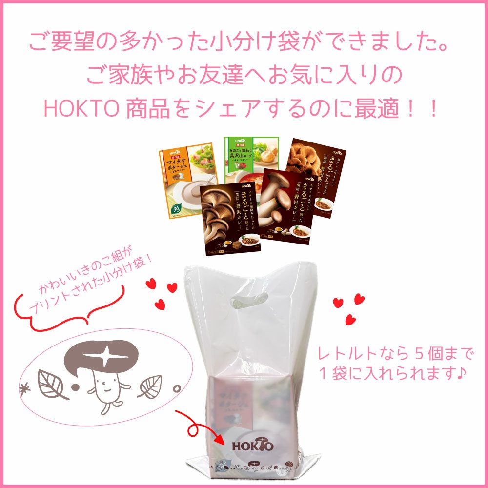 他の画像を見る 小分け袋 【450mm×270mm(マチなし)】 ¥ 30 税込 オリジナル小分け袋が新登場! 100gの椎茸1袋にピッタリ! レトルト系なら3個~5個くらいが入る大きさです♪ ちょっとしたお使い物用にいかがでしょうか? カートに入れる お気に入りに登録する