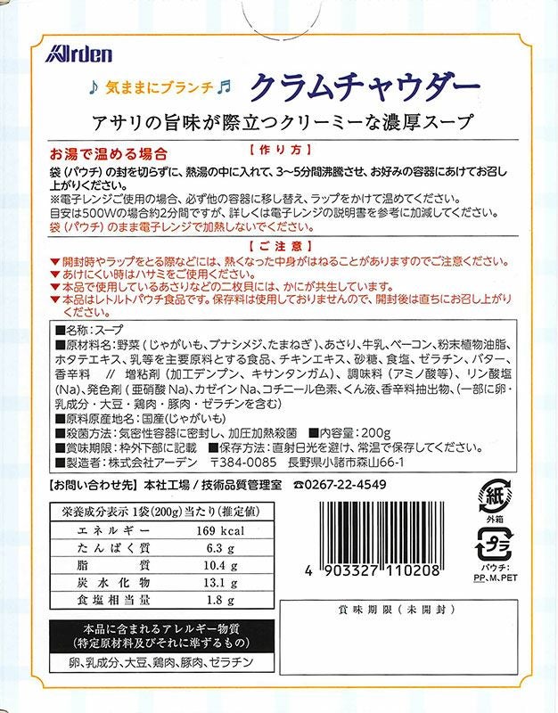 他の画像を見る 【5個まとめ買い5%OFF】気ままにブランチ クラムチャウダー (200g 1~2人前) 当店通常価格 ¥ 1,265 のところ ¥ 1,202 税込 アサリの旨味が際立つクリーミーな濃厚スープ カートに入れる お気に入りに登録する