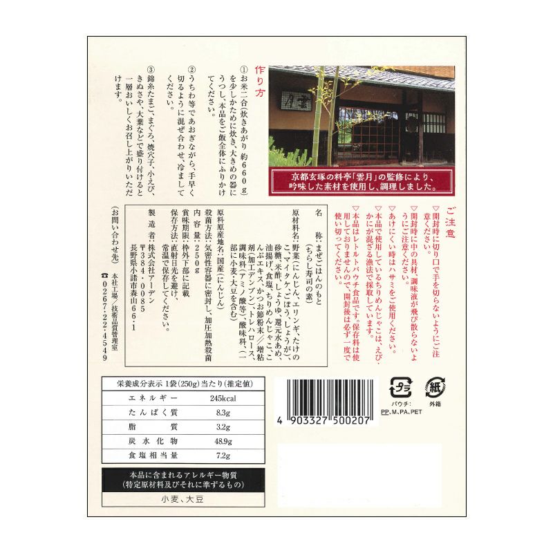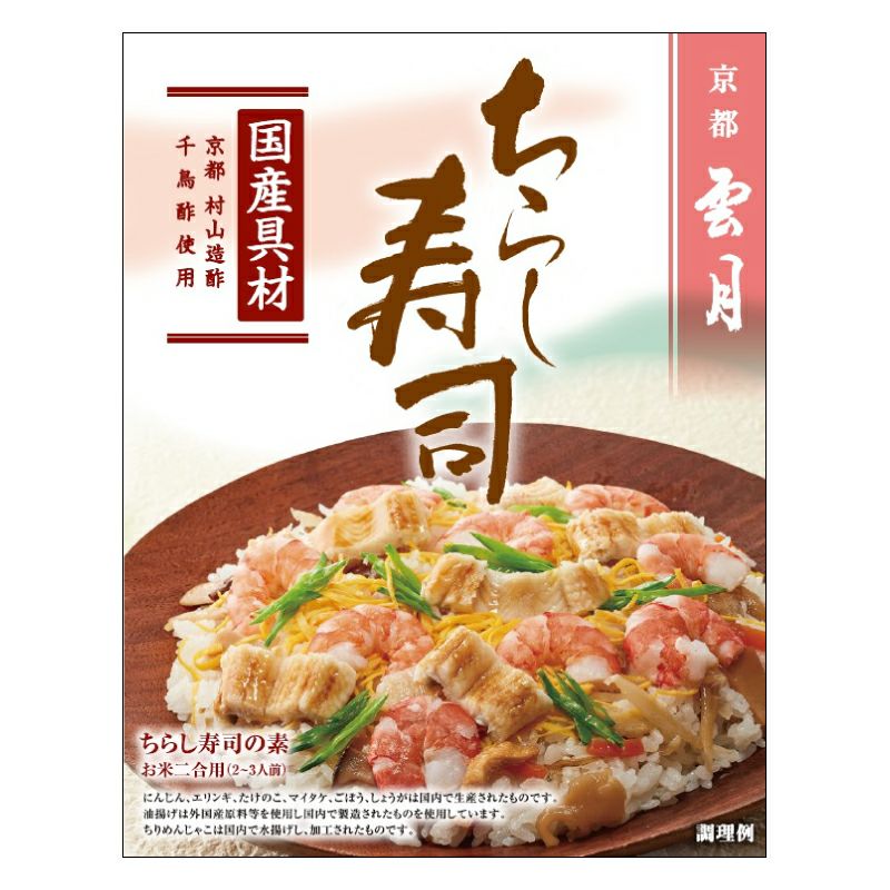 他の画像を見る 【京都 雲月】 ちらし寿司 (250g 2合用 2~3人前) ¥ 389 税込 京都玄豚の料亭「雲月」の監修により、吟味した素材を使用し、調理しました。 選りすぐりのかやくとほどよい合わせ酢で仕上げました カートに入れる お気に入りに登録する